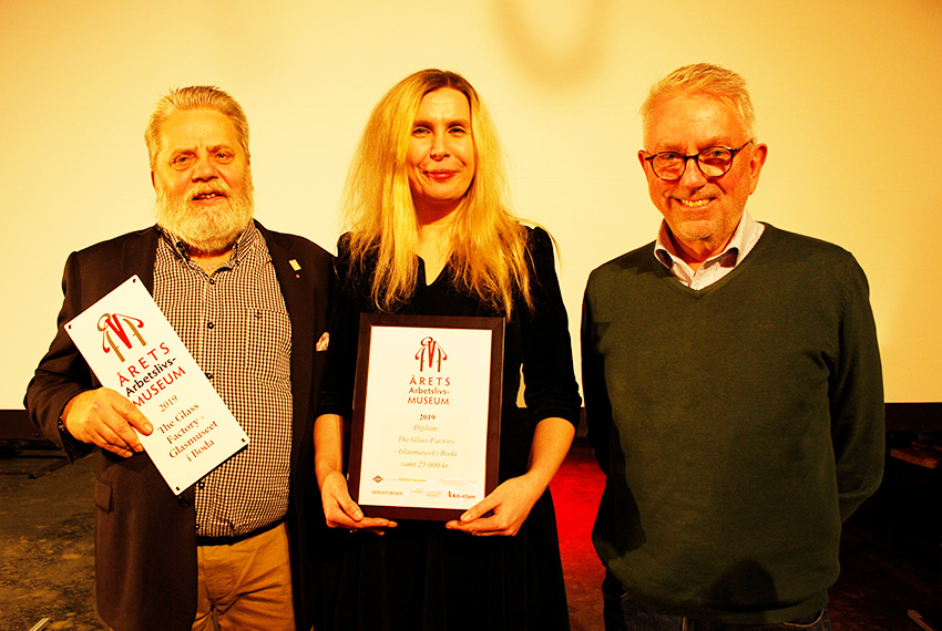 Motivering: ”The Glass Factory – Glasmuseet i Boda förenar det gamla glasblåsaryrket med samtida glaskonst och verksamheten lyckas på ett fantastiskt sätt förena lokala och internationella utbyten. Glashyttan är ett verkligt levande museum med kunskapsöverförande aktiviteter där barn och vuxna bjuds in till att vara en del av glasrikets historia och framtid. Satsningen på The Glass Factory – Glasmuseet i Boda visar på kommunalt mod och förståelse för industrisamhällets kulturarv och dess betydelse för dagens besöksnäring.”