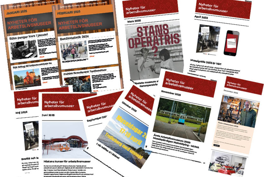 – Nyhetsbrev. Vi ger ut ett nyhetsbrev en gång i månaden tillsammans med Arbetets museum där vi informerar om allt som rör arbetslivsmuseer.